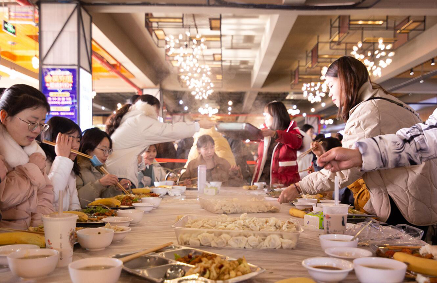 整个过程中有低头不语比赛速度的、有自嘲笨拙的、有包着饺子聊着学习趣事的.....